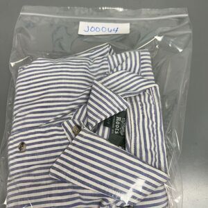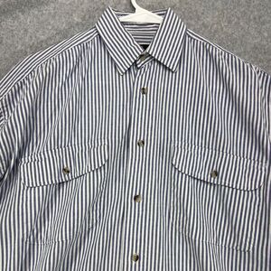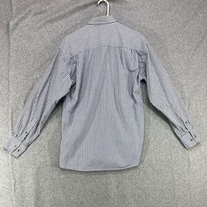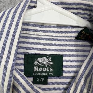 Roots Button Up Shirt Mens Small Blue White Striped Long Sleeve Chambray Pockets