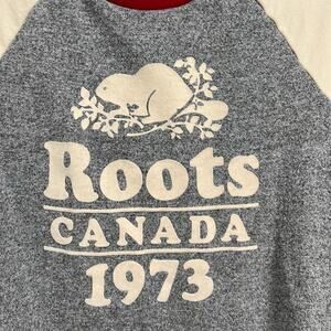 Roots Cabin Canada Red White Grey Retro Flocked Beaver Sweatshirt Women's Small
