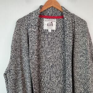 Roots Cabin Cardigan Open Front Pocket Sweater Canada Salt & Pepper Size XL