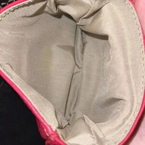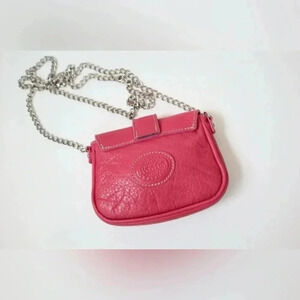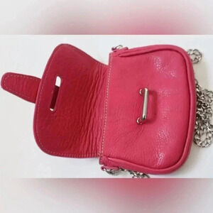 Roots Canada 1990s Fuchsia Mini Leather Purse Silver Chain Link Shoulder Strap