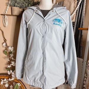 Roots Canada Baby Blue Snap Button Hooded Windbreaker Rain Jacket
