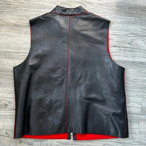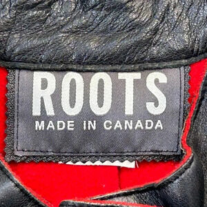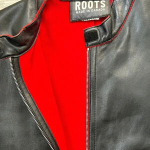 Roots Canada Black Leather Moto Vest Red Fleece Lining