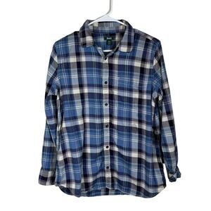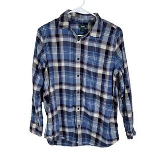 Roots Canada Blue Plaid Light Flannel Button Down Size M