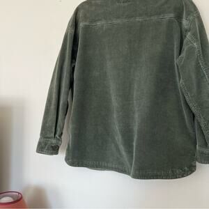 In good preowned condition. Muted green corduroy. Front chest pockets. Sort of a shirt-style jacket made from a super nice thick corduroy.