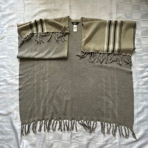 Roots Canada Grey Knit Frill Bottom Drape Poncho with Maple Leaf Detail