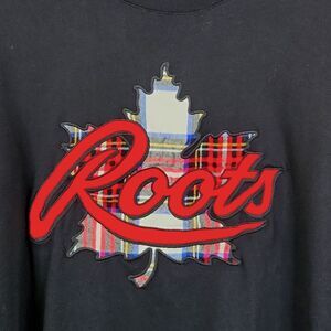 Roots Canada Plaid Maple Leaf Embroidered Stitch Long Sleeve Tee Medium