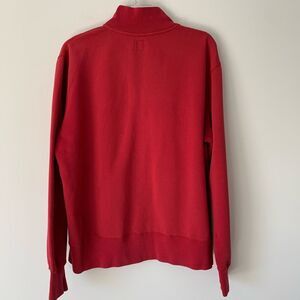 Roots Canada Red Zip Up Sweatshirt Large in good condition but does have holes on sleeve front and back. See all pics - priced accordingly. Measurements laying flat are chest 24 1/2 inches across and length 26 inches long