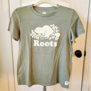 Roots Cotton Cooper Beaver Forest Green T-shirt sz M Very Soft