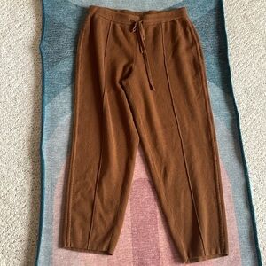 great pre loved condition aize medium pretty brown colored cashmere blend, waist tie, easy slip on, so cozy and comfy, Luxe pintuck pant by Roots