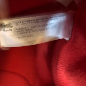 Roots red logo front sweatshirt. White background with logo with a small crack in logo. Size medium. Material as shown in photos.