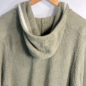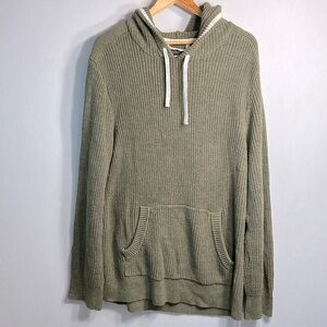 Roots knit sweater hoodie Size Large but is oversized so note measurements, this could work for an extra large or tall. My husband bought this sweater new, excellent used condition. Kangaroo pockets 100% Cotton Approximate measurements: Shoulder to hem: 33 inches Chest laying flat: 22 inches Arm length: 29 inches Smoke/Pet free home Ref 0412 Casual/lounge/soft/weekend/school/college/comfortable/long/tall/sweatshirt