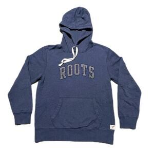 Roots Men’s Medium Hoodie Blue Pullover Sweatshirt Logo Kangaroo Pocket