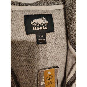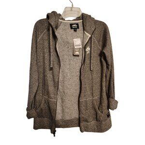 Roots NWT Large Salt & Pepper Gray Zip Front Hooded Sweatshirt Womens Beaver