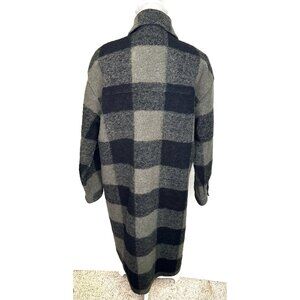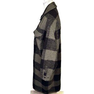 Roots Plaid Wool Blend Long Shacket Jacket Women's Size M Snap Button Front
