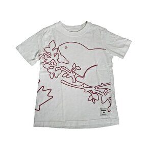 Roots Shirt Kids Small Beaver Logo Canada Flag Short Sleeve Crew Neck Boys
