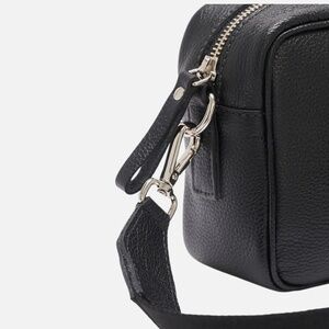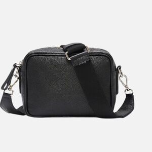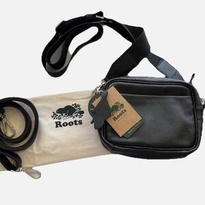 Roots Small Freedom Crossbody Bag in Cervino Black Leather with Adjustable Webbing Sholder Strap + Extra Adjustable Narrow Leather Strap for carrying options - New With Tags & Dust Pouch