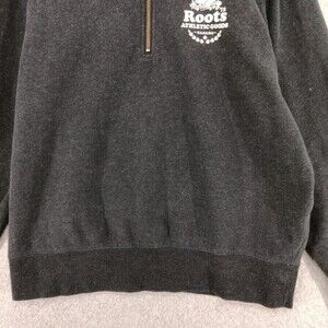 Roots Sweater 1/4 Zip Gray Long Sleeve Casual Polo Sweatshirt Logo Mens Large