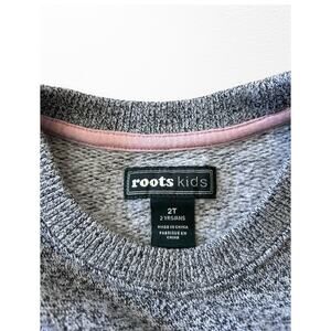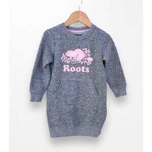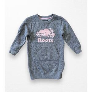 Marled gray sweatshirt dress from Roots in size 2T. Features the Roots beaver logo in pink. Very cozy. VGUC- no stains, tears, or pilling.