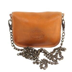 Roots TAN BROWN GENUINE LEATHER CHAIN FLAP X-BODY SHOULDER BAG MINI PURSE CLUTCH