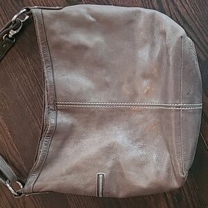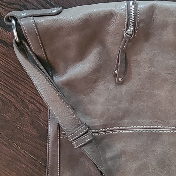 Roots Taupe Leather Slouchy Hobo Shoulder Bag Large Purse Weekend Carry-all