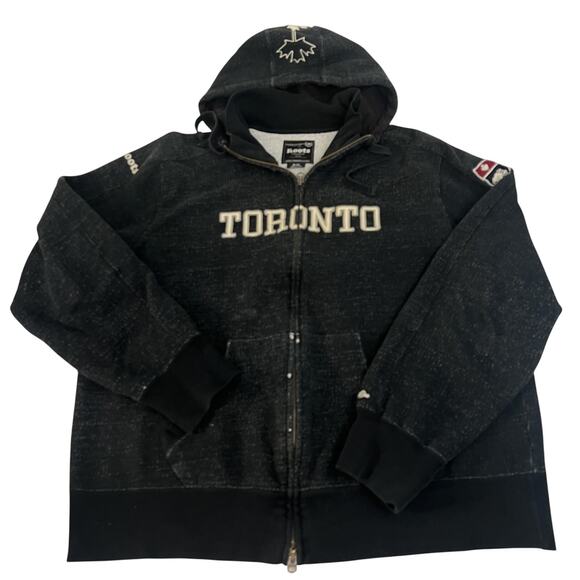 Roots Toronto Hoodie Sweatshirt Womens XL Black Heather Full Zip Fleece Canada