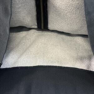 Color: Black heather with grey fleece interior; ribbed cuffs and hem.