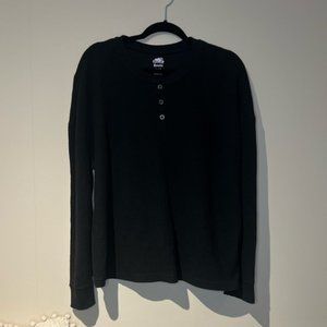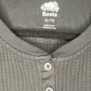 Roots Waffle Knit Henley Longsleeve - XL in Black