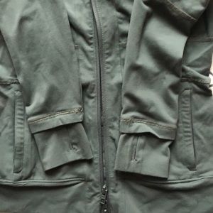 Gorgeous Roots activewear Jacket. Fitted, stretchy, with monkey sleeves, interior earphone pocket, and 3 zip pockets (as shown). Logo on back of collar. Good condition, barely pre-pilling.