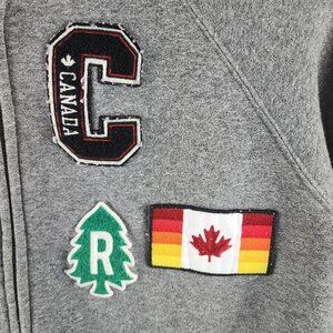 Roots in Canada Hoodie Mens Large Gray Full Zip Patches