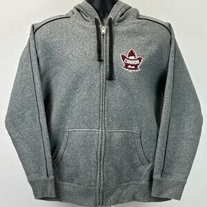Roots is Canada Hoodie Hooded Sweatshirt Full Zip Maple Leaf Beaver Canadian Gray Mens L Large