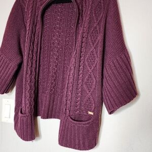Roots lambswool-blend knit sweater zip cardigan. Pockets. 3/4 sleeve. XS.