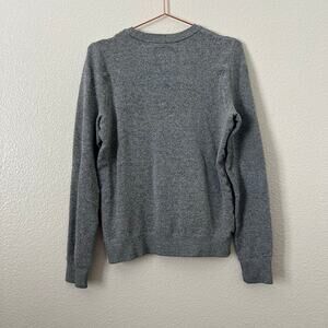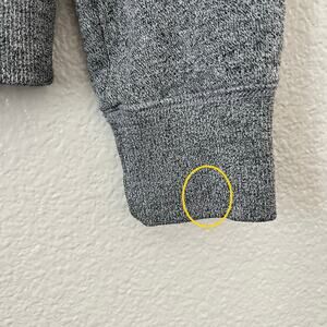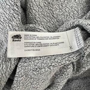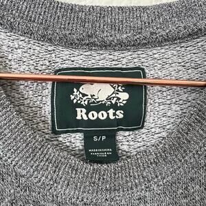 Roots winter beaver earmuffs scarf crew neck sweatshirt heather gray, Size S. Good used condition. Please note there is a light red spot on the back of the right sleeve cuff (see last photo for closeup and detail).