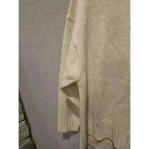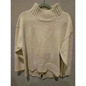 Keywords: Ropé Picnic, ivory sweater, turtleneck, pullover, women's fashion, casual wear, knit sweater, loose fit, ribbed, back slits, long sleeve, machine washable, pre-owned, cozy, stylish.