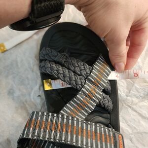 NWOT Megnya (Amazon) rope and velcro strap sandals. Size is 8 but fits more like a 7.5, see pix. I typically wear a 7 or 7.5 in sandals and see how these fit my foot. Colors are black, gray, white, and orange. The ankle straps are adjustable with velcro. Soles are squishy and comfy. Kinda hippie-like. Very beachy.