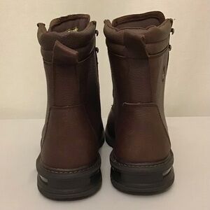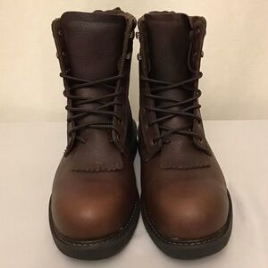 These dark cognac premium oiled and tumbled leather boots have an 8” lace up with Pneumatic air cushioned comfort technology. These CSA approved steel toe and plate work boots are constructed with an oil and slip resistant flexible rubber outsole, comfort removable insole with moisture wicking lining. 09-020-1431-0775.