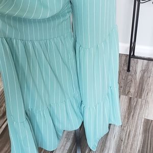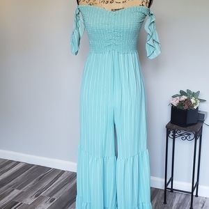 Teal roper pants with white stripes off shoulder sleeves only wore once