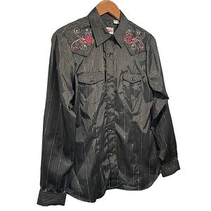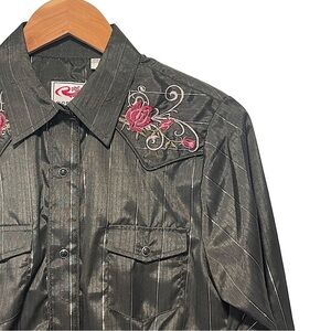Roper Black Snap Button Embroidered Western Button Front Shirt Size Medium