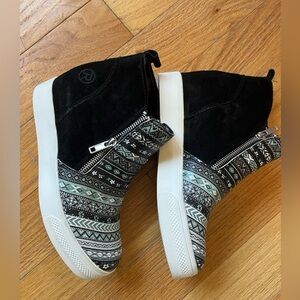 Roper Black Suede Hidden Wedge Southwestern Boots Size 8