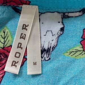 This Roper top features a vibrant blue hue with a classic notched collar, offering a timeless button-down style. The shirt is crafted from lightweight fabric, ensuring comfort and breathability. Its buttoned design adds a touch of sophistication to any outfit.