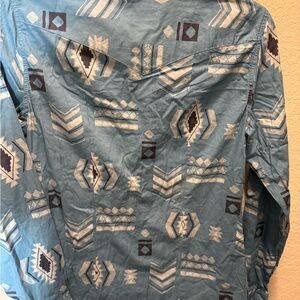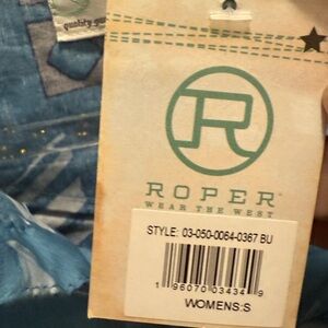 Roper Blue Button Down Shirt with Notched Collar and Long Sleeves size S