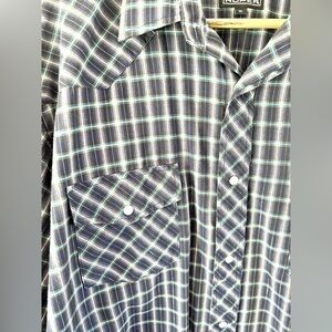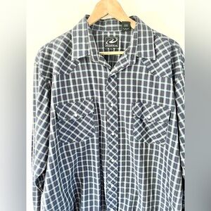 Roper Blue & Silver Metallic Plaid Collared Pearl Snap Western Shirt Size XL