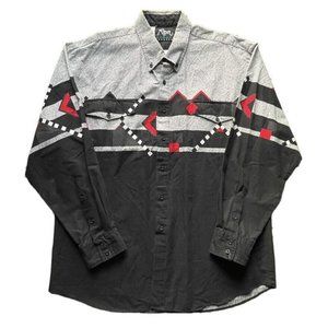 Roper Border Southwestern Aztec Rodeo Dalmation Print Button Down Shirt USA XL Men.
