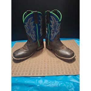 Roper Boys Western Leather Boots Size 9 Blue & Green Embroidered Handmade In Mex