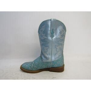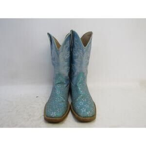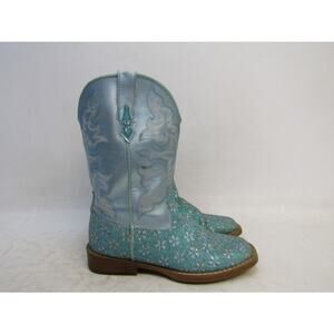 Roper Brand Youth Sz 2 Metallic Turquoise Floral Glitter Cowboy Boot