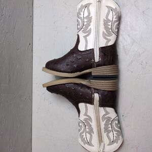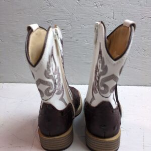 Roper Bumps Ostrich Square Toe Toddler Size 6 White Brown Cowboy Boots