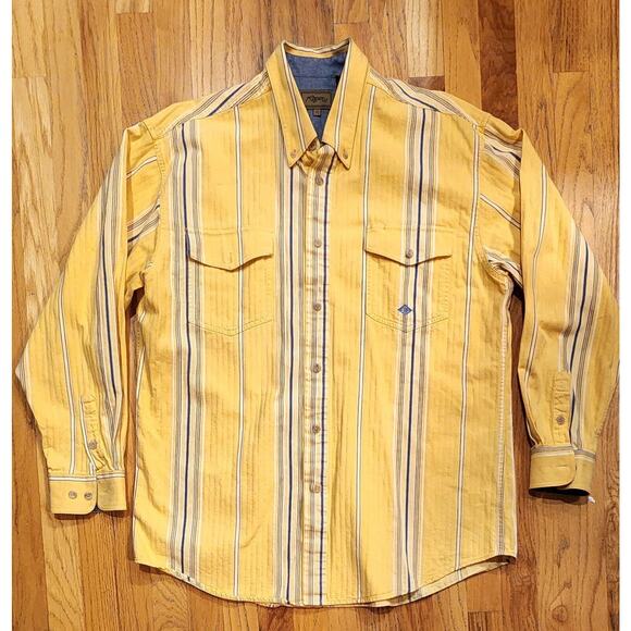 Roper Button Front Shirt Long Sleeve Yellow Blue Stripe Mens Sz X-Large Western