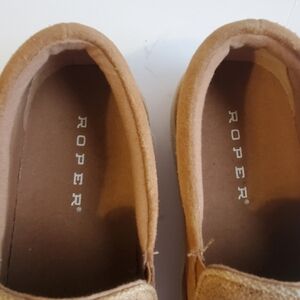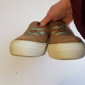 Roper Darcy Aztec .sz 5 1/2. Metallic suede leather. Slip on. Embroidery