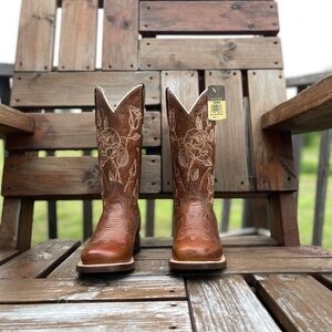 Roper Desert Rose Steppin Out western boot. Size 5 and size 5.5 Brown with embroidered rose stitching. Would be super cute with a summer dress, shorts or jeans. New with tags and never worn. I purchased them for an event that was cancelled last minute.