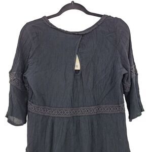 Roper Dress M Black Tiered Textured Lace Baby Doll Half Sleeve Mini Full Boho