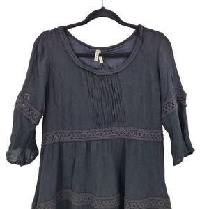 Roper Dress M Black Tiered Textured Lace Baby Doll Half Sleeve Mini Full Boho